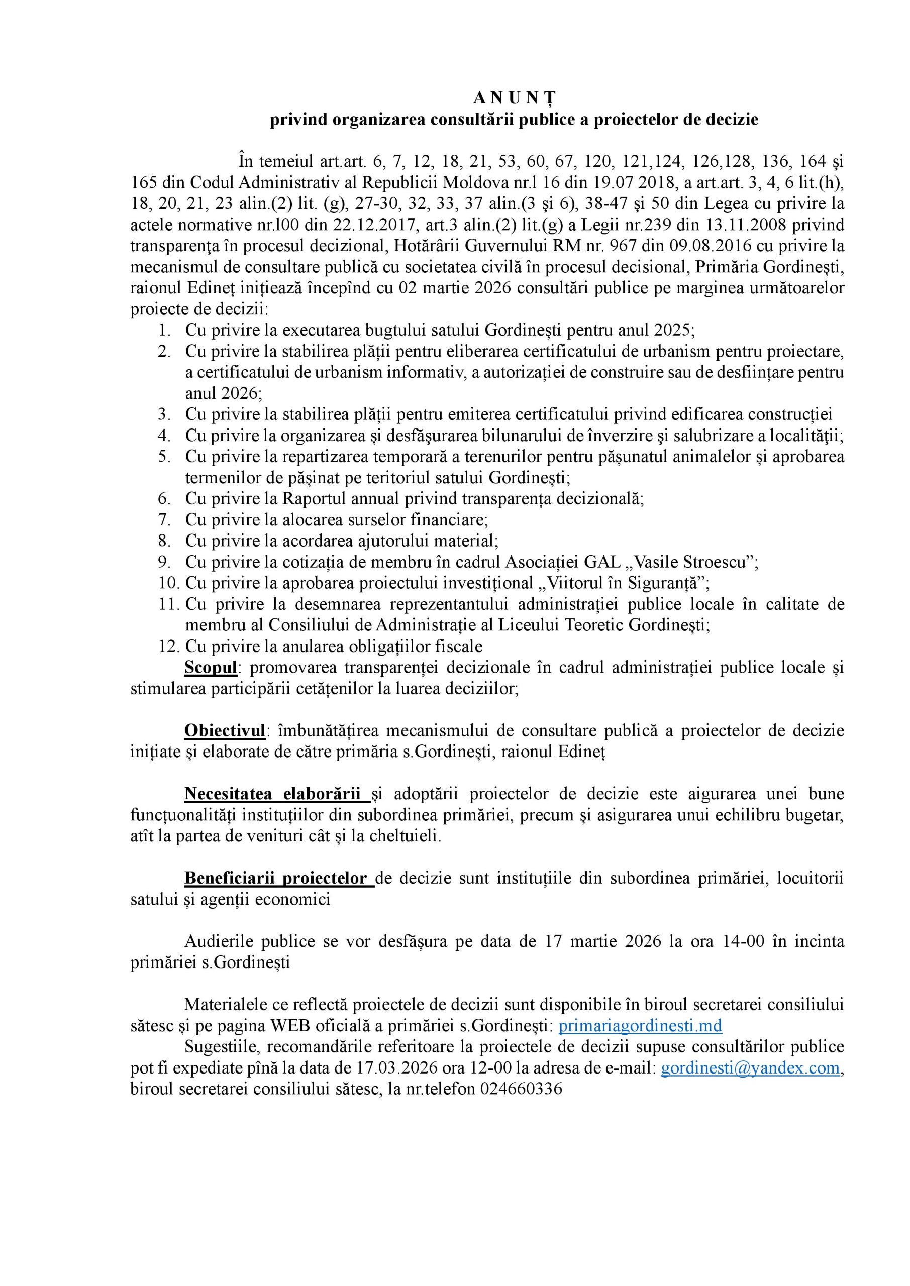 ANUNŢ privind organizarea consultărilor publice a proiectului de decizie